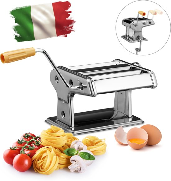 De RVS Pastamachine is precies wat je nodig hebt. Deze machine van modern design, is een uitstekend middel om de traditionele pasta te bereiden, zoals deze oorspronkelijk is bedoeld. De machine is mechanisch, niet electrisch en dit kan zelfs een voordeel zijn. Je zult ontdekken dat het maken van pasta een koud kunstje is, letterlijk en figuurlijk en dat het je in alle opzichten veel zal opleveren, namelijk smaak en gezondheid. Geen kunstmatige stoffen erin, wel de gezondste ingedriënten en zoveel of weinig zout als je maar wilt of kan hebben.